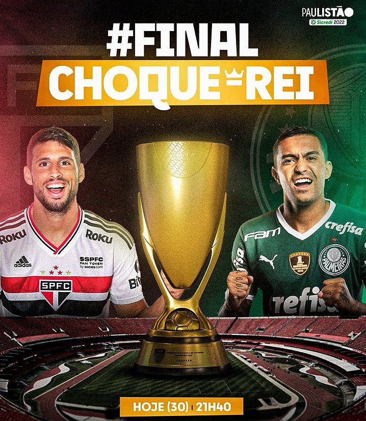Os primeiros 90 minutos da final do Campeonato Paulista serão disputados nesta quarta-feira, reunindo os mesmos rivais de 2021. A partir das 21h40, São Paulo e Palmeiras medem forças no Morumbi, em um Choque-Rei que opõe ascensão e consistência. A partida de volta será no domingo (3), às 16h, no Allianz Parque.