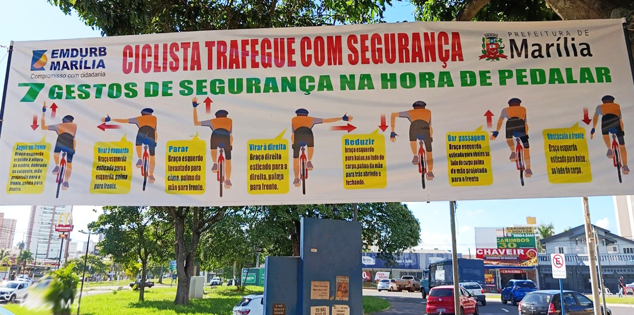 A Emdurb instalou uma faixa/painel em ponto de concentração de ciclistas com informações e orientações sobre regras de trânsito para este público. Também implantou ciclovias em diversas regiões de Marília, aumentando a segurança para os ciclistas no trânsito.