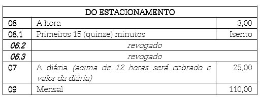 de eliminar os tempos "quebrados" da primeira hora. O valor mínimo passa de R$ 2 para R$ 3,00 (aumento de 50%). Mas, o índice maior passou a ser da diária: de R$ 15,00 para R$ 25,00 (quase 70%). Isso em menos de um ano desde o reajuste aprovado anteriormente (outubro/2016).