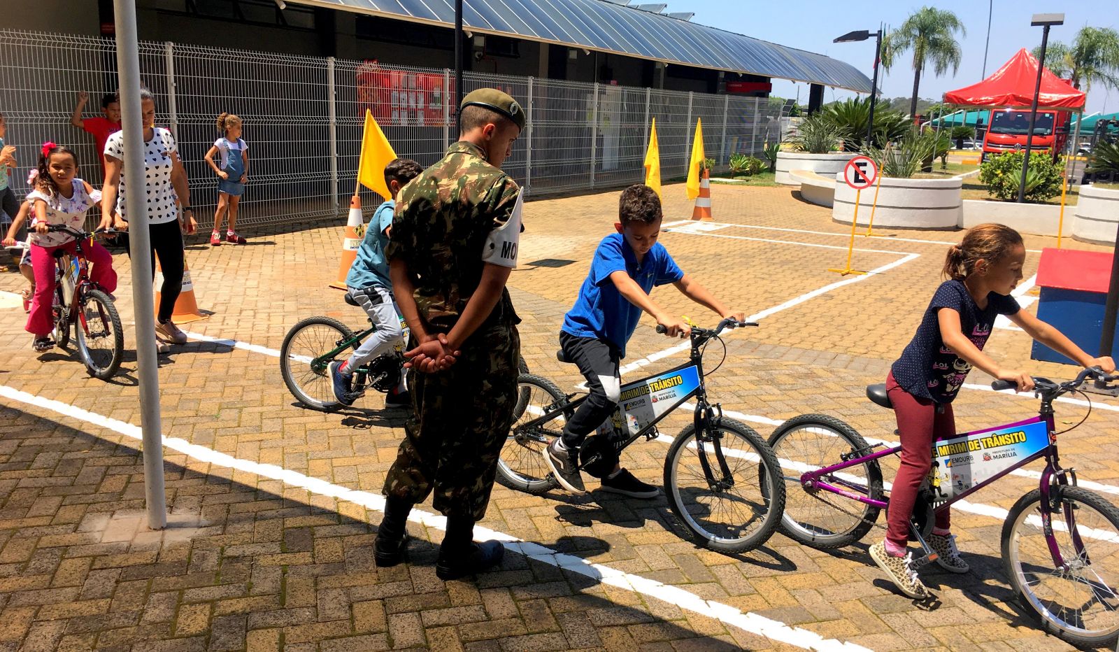 A instrução de normas de trânsito é passada às crianças de maneira lúdica pelos agentes de trânsito e conta com auxílio dos atiradores do Tiro de Guerra, da Polícia Militar e alguns voluntários.