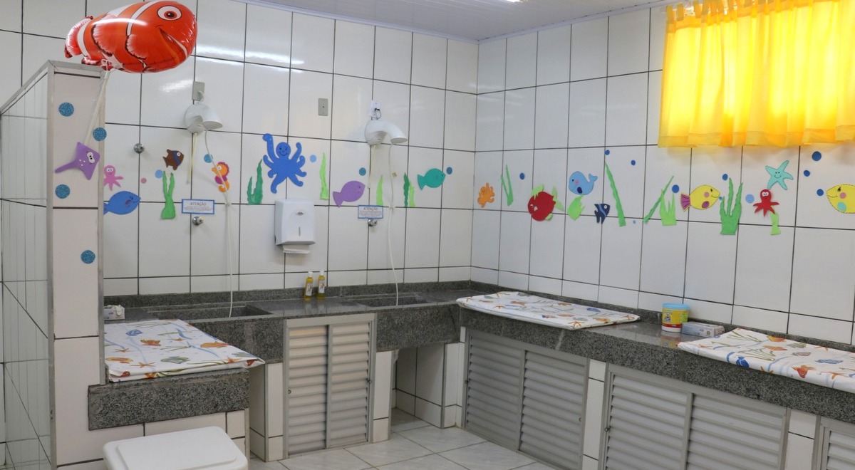 A Emei Curumim recebeu pintura e execução de azulejos nas seis salas de aulas, na sala de estimulação, na sala dos professores, no depósito de materiais e colchões, no refeitório e lavanderia, além da pintura em toda parte interna e externa da unidade.