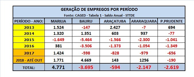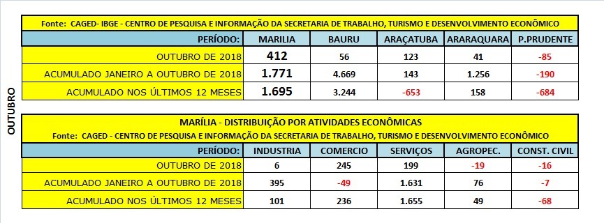 “Na região, Marília foi a cidade em outubro com o melhor saldo e, permanecendo o movimento do ano passado das contratações, novembro poderá surpreender positivamente . Em novembro de 2017 tivemos saldo positivo de 362 novos postos somente no setor do comércio. Expectativa com novo governo e retomada econômica para 2019, podem impulsionar positivamente ainda mais estes números”, afirmou Cassinho.