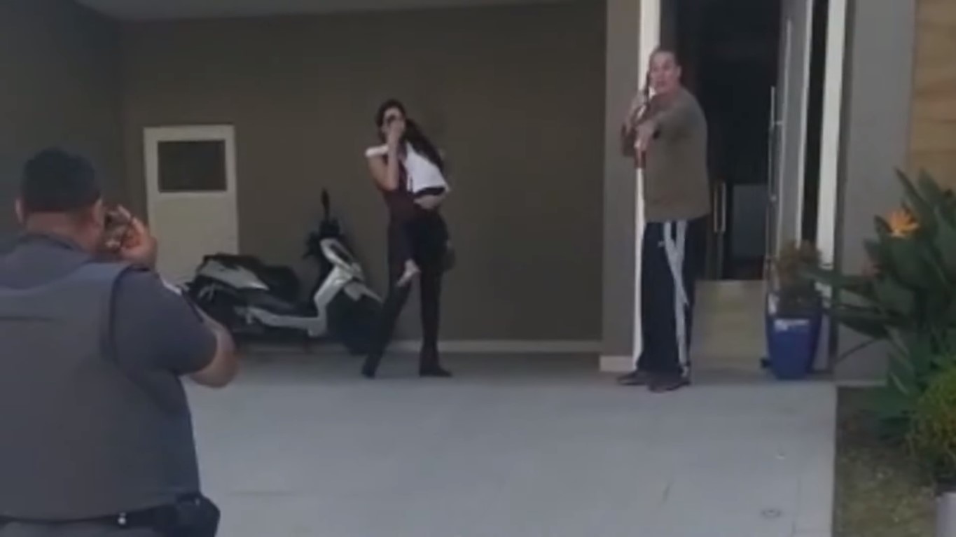 Na ocasião, o PM solicitou reforço ao Comando de Grupo Patrulha, que, ao chegar no condomínio, prendeu Storel. Ele foi conduzido para a Delegacia de Defesa da Mulher.