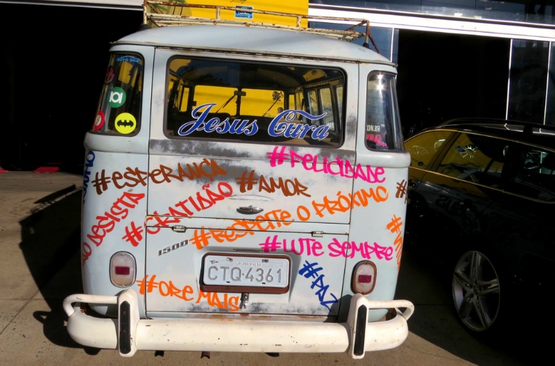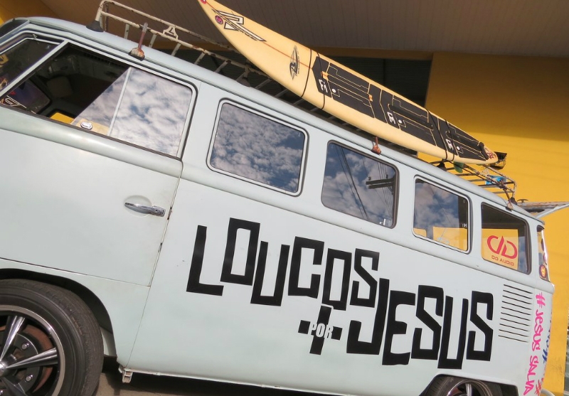 O projeto “Kombi de Jesus” está completando dois anos e é considerado um sucesso, principalmente entre os jovens, já que o veículo é todo “incrementado”, com um som potente e até uma prancha de surf.