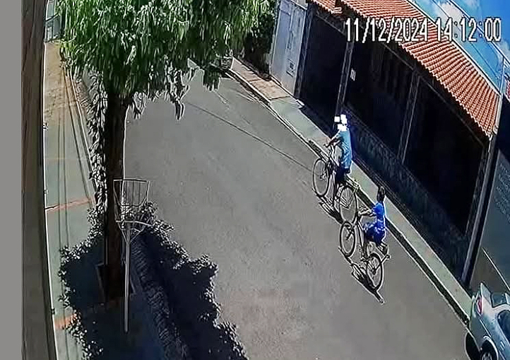 Imagens mostram o suspeito pedalando outra bicicleta ao lado de Mateus.