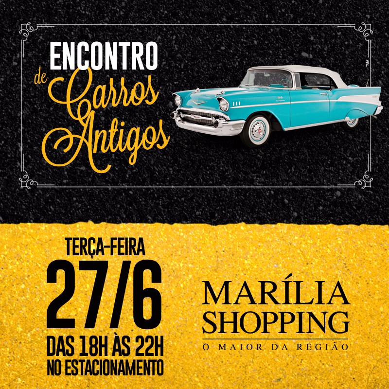 Promovido pelo Clube do Opala de Marília em parceria com o Fusca Clube de Marília, o encontro de carros antigos, acontece gratuitamente das 18h às 22h, no estacionamento do centro de compras e é destinado a familiares, amigos e admiradores dessas raridades que marcaram uma época, para uma troca de experiências.