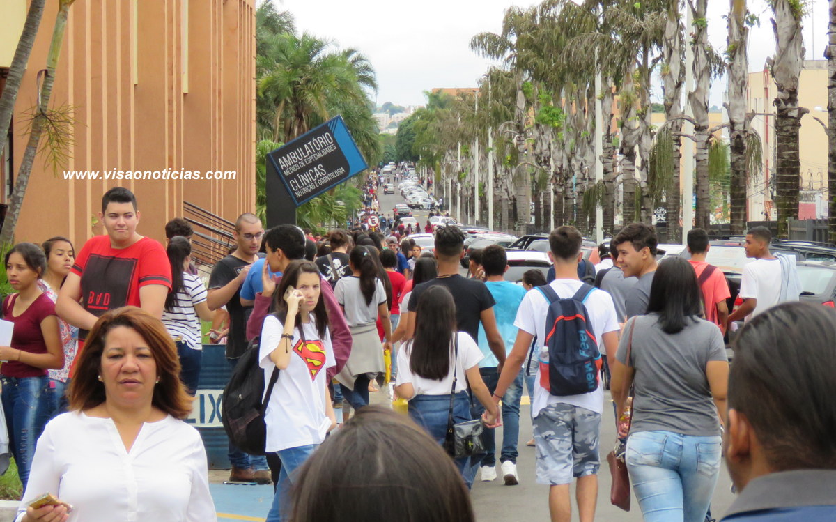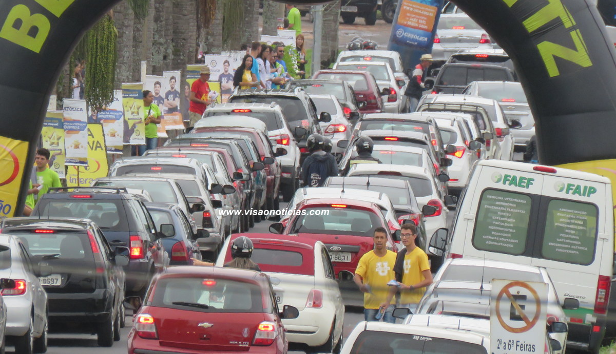 Movimento intenso de veículos na chegada ao campus universitário, em Marília.
