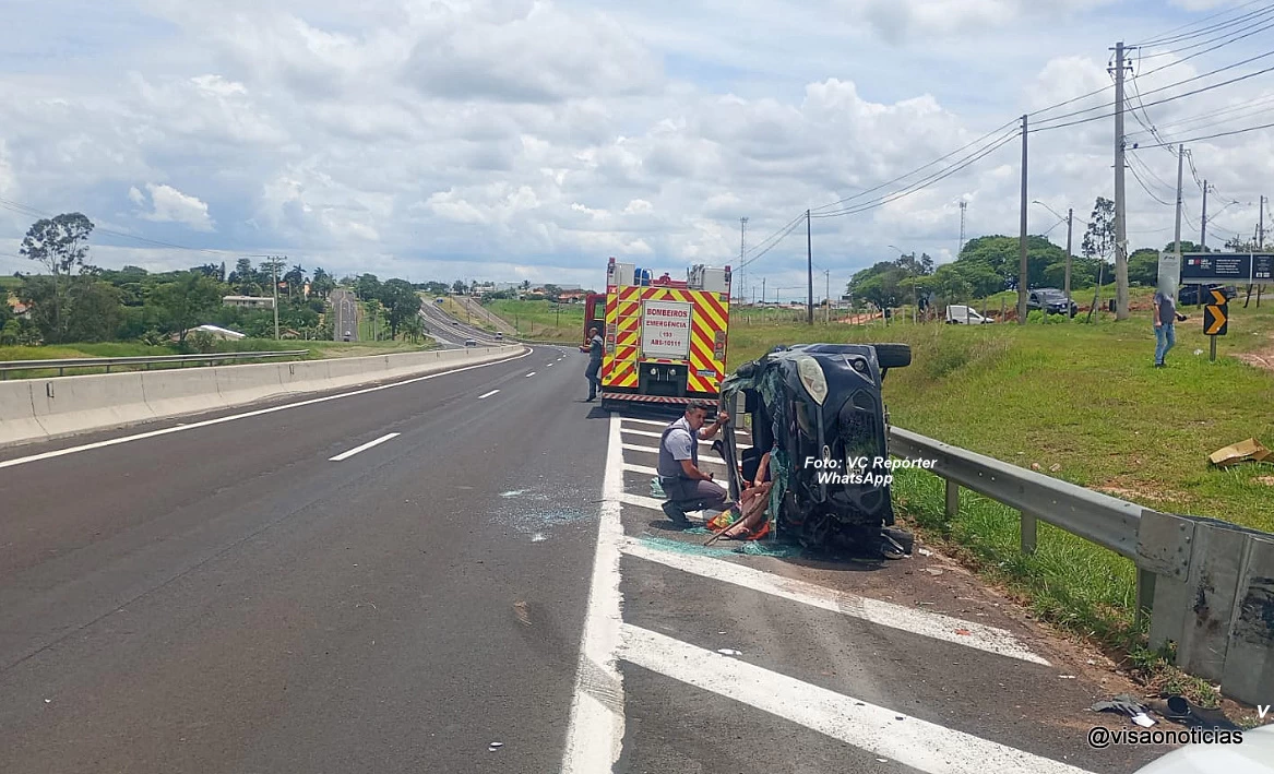 Uma enfermeira de 46 anos sofreu ferimentos pelo corpo após bater o carro contra uma defensa metálica e em seguida capotar. Na confusão, a sua pet, da raça Golden, que estava no veículo, após o impacto acabou saindo correndo e ainda não foi localizada.