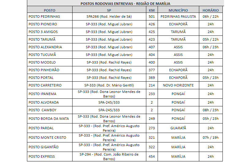 A Entrevias, em apoio aos caminhoneiros que circulam por rodovias do estado na fase de quarentena de prevenção ao coronavírus, divulgou a relação de postos que mantêm seus serviços ao público.