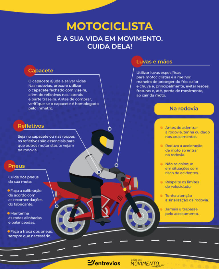 Vinte motociclistas que responderam o quiz sobre segurança viária, realizado pela Entrevias, receberão um voucher cada no valor de R$ 500 para realizar a manutenção da moto ou ainda investir na compra de equipamentos de proteção individual.