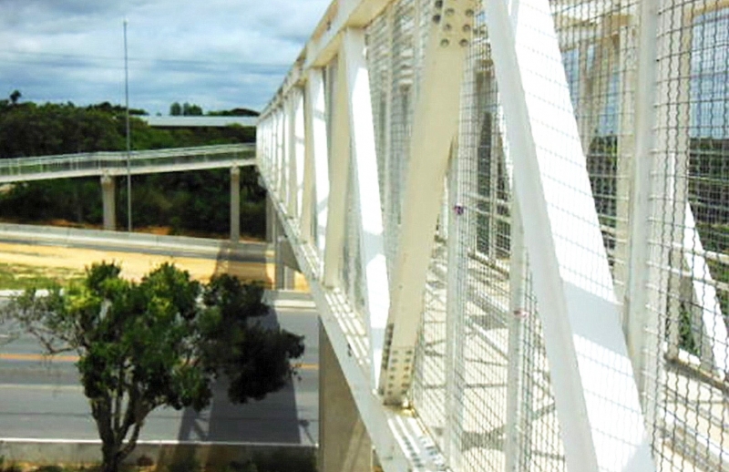 As obras de arte seguirão os padrões técnicos exigidos, incluindo iluminação, tela de proteção lateral, acessibilidade para portadores de necessidades especiais e dispositivos de bloqueio no canteiro central da rodovia, de modo a canalizar os fluxos de pedestres para as passarelas.