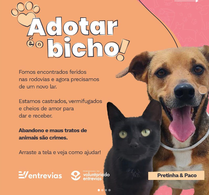 A concessionária Entrevias de Rodovia realizará neste domingo (dia 11), em Marília, uma feira de adoção dos animais domésticos que foram resgatados nas rodovias que estão sob sua concessão.