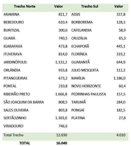 O valor designado a cada prefeitura é calculado com base na extensão da rodovia em cada município.