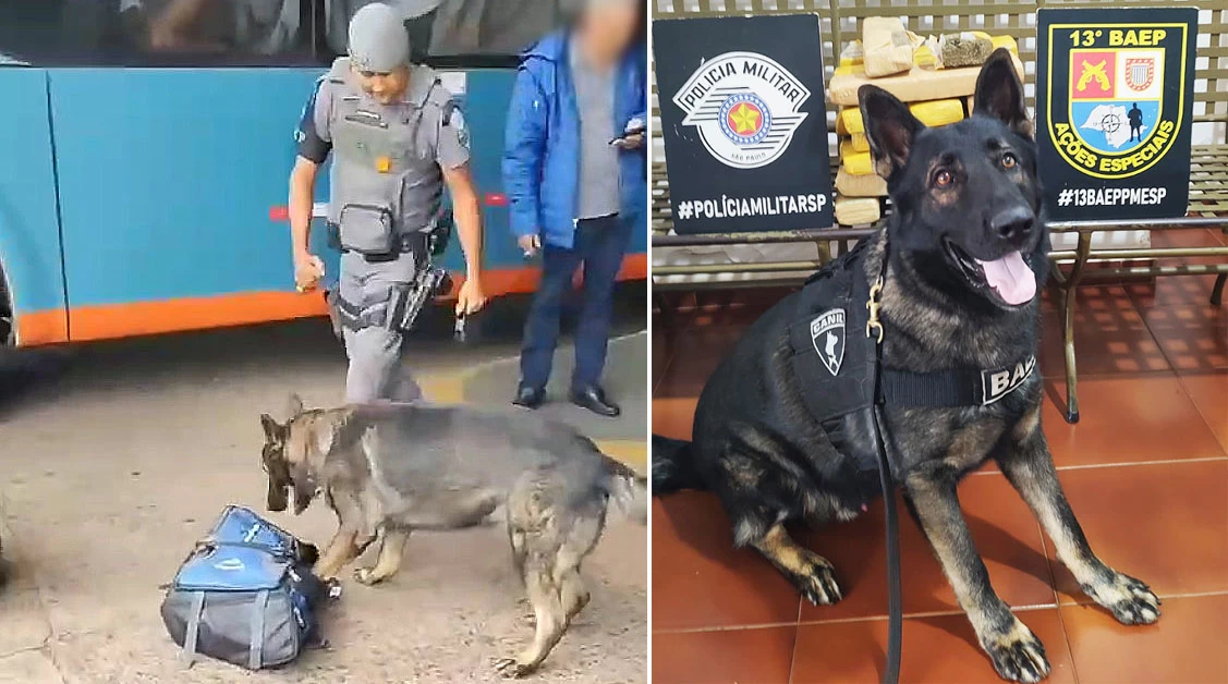 O animal acabou apontando para duas delas (uma mochila e uma mala) que conteriam entorpecentes. Os policiais abriram as bagagens encontrando 19 tabletes de maconha que pesaram cerca de 20 quilos. O dono, um rapaz de 29 anos, foi levado à DISE (Delegacia de Investigações Sobre Entorpecentes) de Ourinhos e autuado em flagrante por tráfico de drogas.