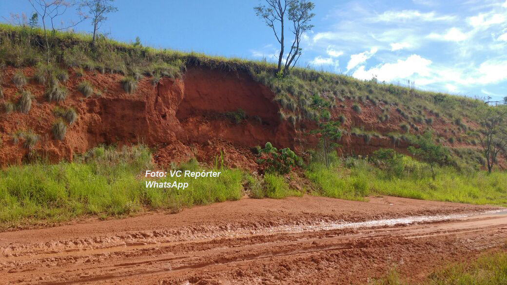 interditaram uma das faixas da rodovia do Contorno, no sentido shopping-campus universitário. O motivo é uma erosão e logo à frente também já existe outro ponto preocupante. A alça de acesso à avenida Presidente Roosevelt também está com muita terra depois que houve um desmoronamento no local. O perigo maior é se voltar a chover.