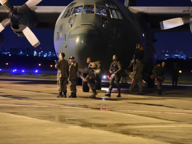 Homens das Forças Armadas chegao ao Espírito Santo, na noite desta quarta-feira (8) (Foto: Fred Loureiro/Secom-ES)