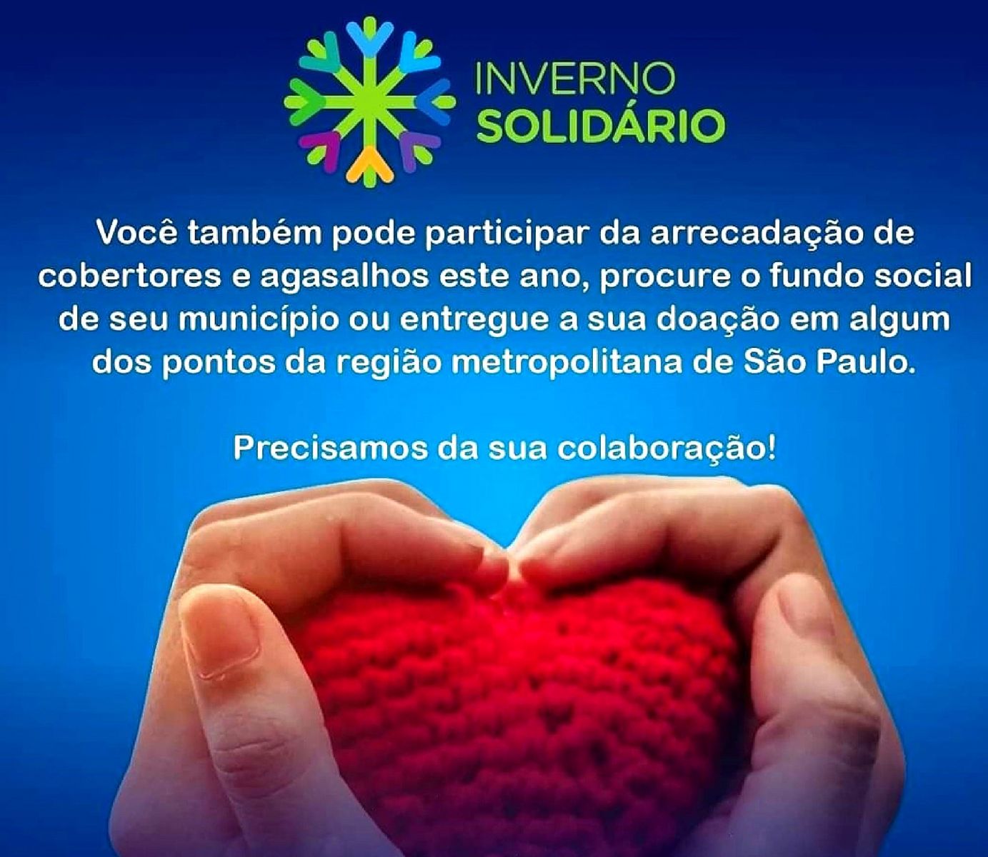 Campanha Inverno Solidário arrecada doações de cobertores e agasalhos até o dia 22 de setembro