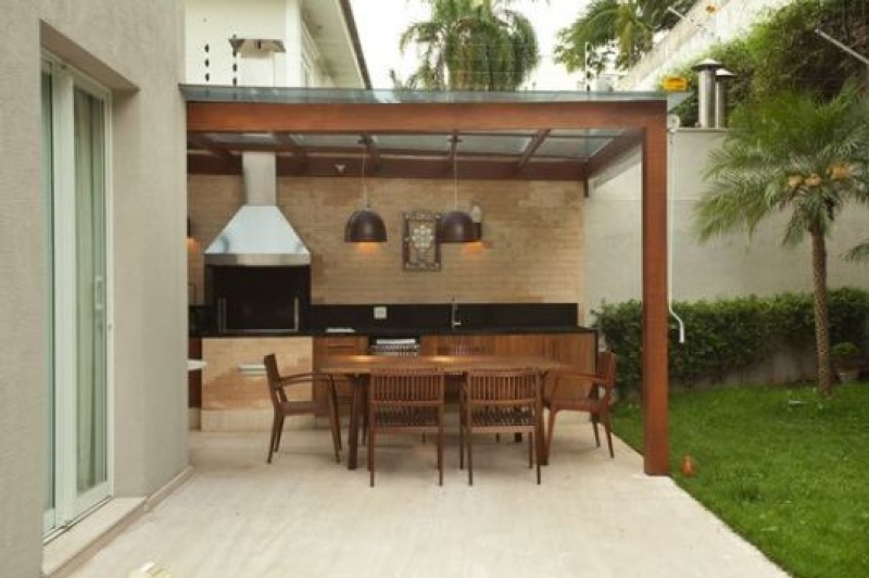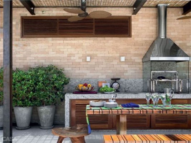 As churrasqueiras merecem um destaque especial, pois existem vários tipos e as opções de acabamentos para elas são diversos. Além da conhecida churrasqueira de alvenaria, existem a pré-moldada e a gás que é conhecida pelo seu acabamento em vidro e coifa de inox, além das vantagens como a não exalação de fumaça, fácil controle de chama e facilidade de limpeza.