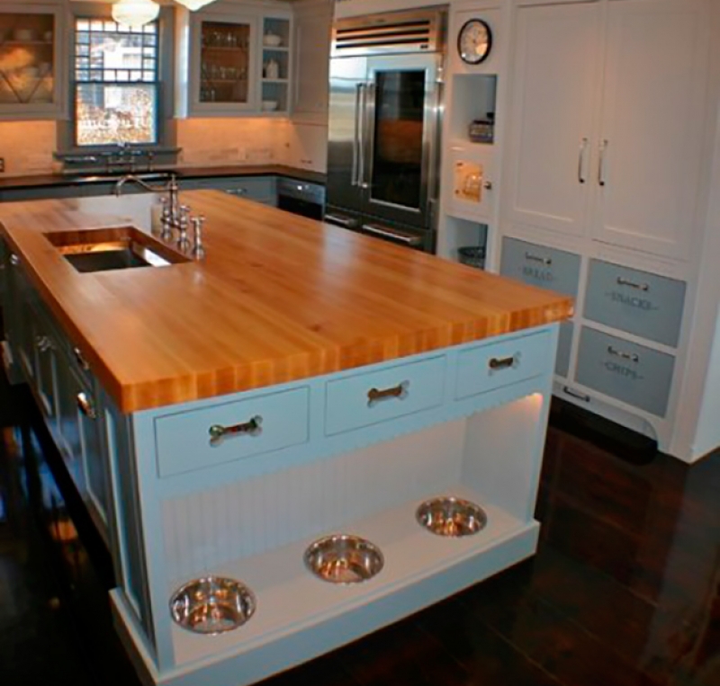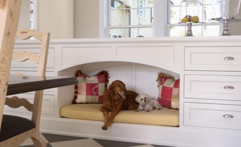 Os cachorros são verdadeiros companheiros e adoram ficar ao lado do seu dono em todos os momentos. Logo, eles ocupam toda a casa, sendo interessante a criação de ambientes em vários cômodos, como cozinha e sala de estar. Na cozinha é possível desenvolver mobiliário já com comedouro para o seu pet, deixando o ambiente muito mais organizado.
