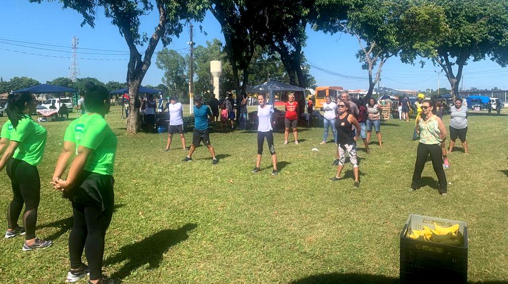 O evento aconteceu no dia 02/04, às 8h, e contou com uma série de atividades, como acolhimento com coleta de dados, aferição de pressão arterial, peso, altura e IMC, orientações de saúde e divulgação do Espaço Viver Mais Saúde, aula de alongamento, atividade física e sorteios.