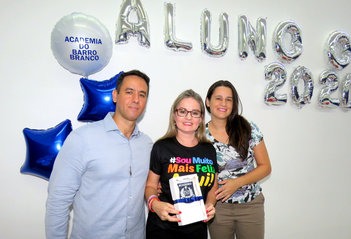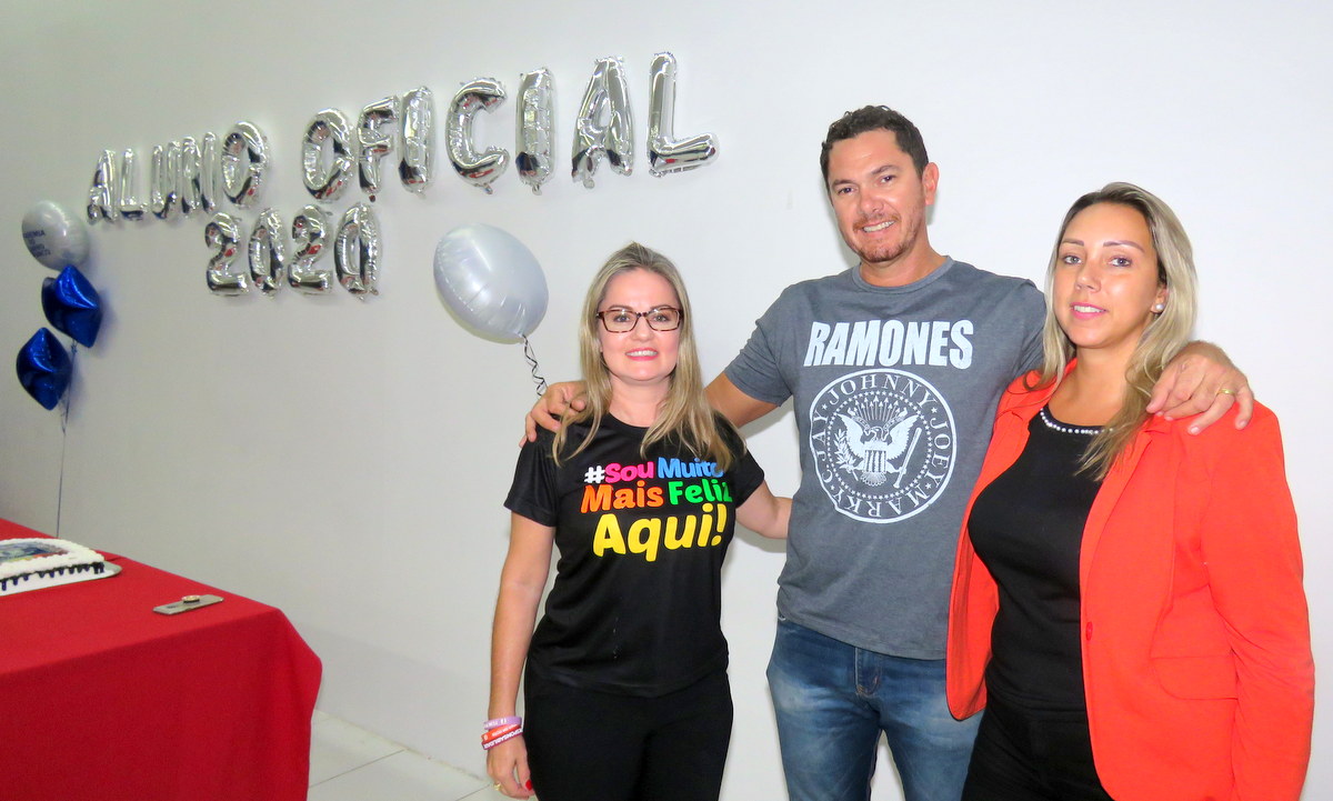 Professor Eduardo Tavares com sua esposa, Daniela e Vânia. Homenagem especial ao filho, aprovado no Barro Branco.