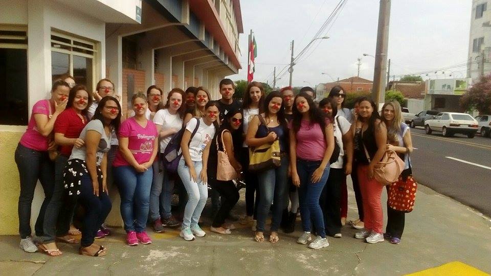 Com "nariz de palhaço", os estagiários fizeram manifestação em frente ao Centro Administrativo da Prefeitura.