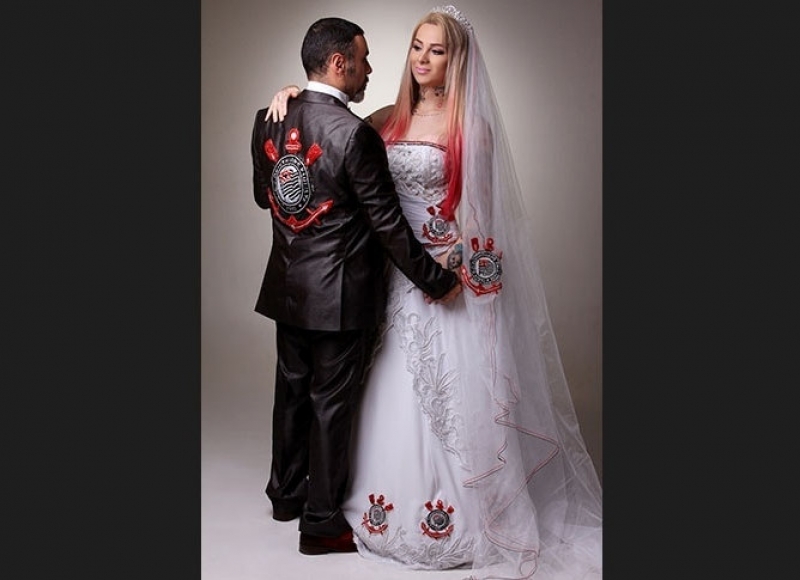 Na coleção, há modelos nos comprimentos tradicionais e os mais curtinhos, para as corintianas que quiserem ousar um pouco mais. Cada peça custa, de acordo com o comunicado, a partir de R$ 12 mil. Os noivos também podem optar por ternos com as cores e o escudo do Corinthians.