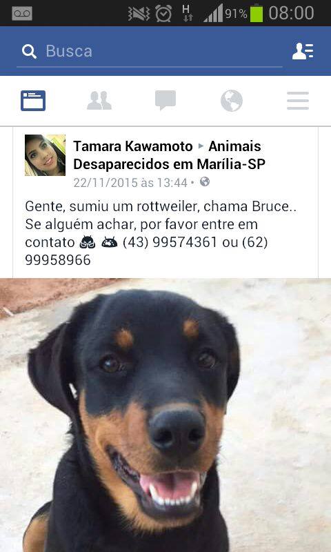 Mas, por ser domingo, não conseguiu reencontrar o Bruce. Isso só ocorreu no início desta tarde. "Rapaz muita gente ajudou, foi impressionante, assim que eu postei nos grupos ja recebi print da reportagem, inclusive queria agradece vcs aí pelo ótimo trabalho, foi o que salvou meu cão. Obrigadoo!!", disse Marco Augusto Lesniewski, por meio de mensagem via WhatsApp. A família mora em Quatigá e ele está em Marília fazendo cursinho de Medicina.