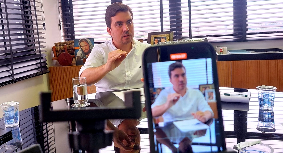 Ele falou de assuntos polêmicos, como defender a concessão do DAEM, a suspensão dos radares, como administrar uma dívida que seria bilionária (R$ 1,5 bilhão), a crise da previdência municipal (IPREMM) e de que maneira "negociar" com o seu pai (Abelardo Camarinha) que pretende lançar sua atual esposa como candidata, já que ele está inelegível.