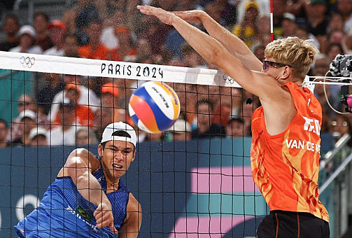 Os brasileiros Evandro e Arthur Lanci derrotaram os holandeses Matthew Immers e Steven Van de Velde por 2 sets a 0 (parciais de 21/16 e 21/16) para se classificarem para as quartas de final do torneio de vôlei de praia dos Jogos Olímpicos de Paris (França).