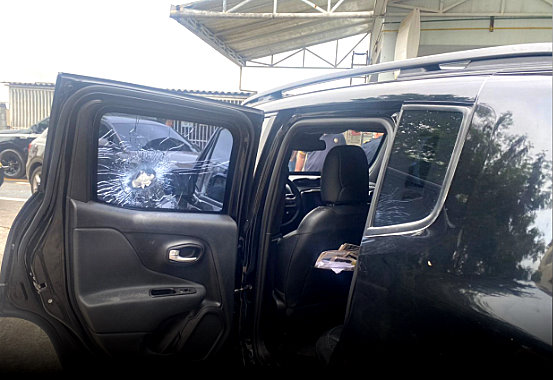 O disparo de fuzil atingiu o vidro lateral onde viajava o ex-prefeito.