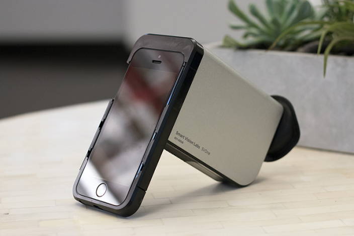 O aparelho, chamado SVOne, é acoplado a um iPhone. Para fazer o exame é bem simples: basta acionar um aplicativo específico, olhar para o aparelho e tirar uma série de fotos do olho.