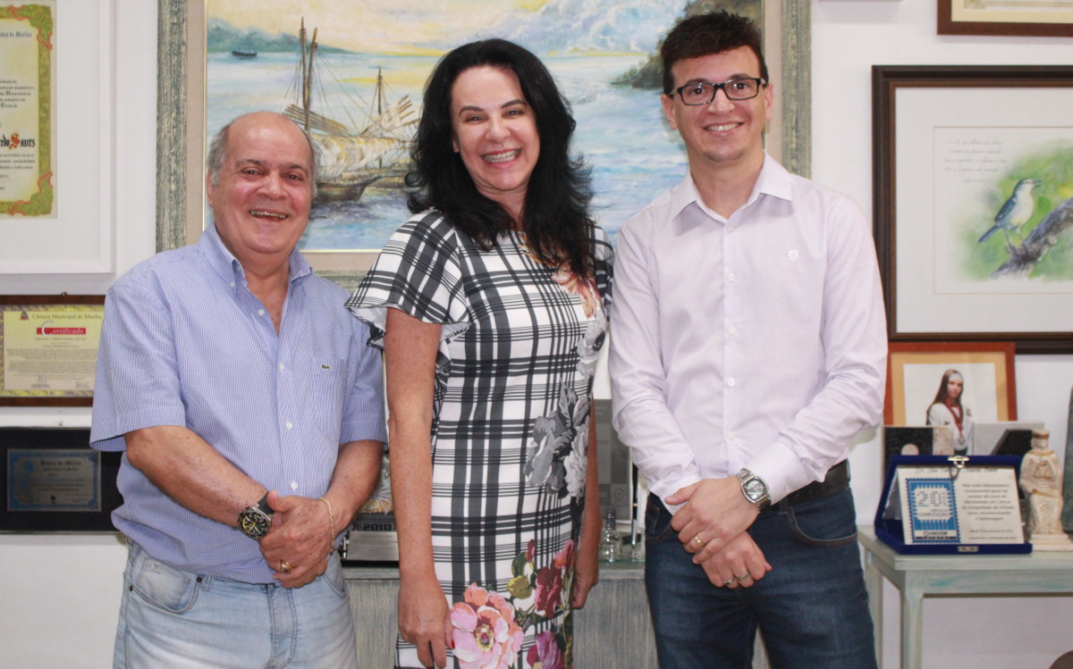 Na foto, da esquerda para a direita, o Reitor do UNIVEM, Dr. Luiz Carlos de Macedo Soares, a Pró-reitora de Graduação, Profª Drª Raquel Ferraroni sanches e o coordenador dos cursos do IST. Prof. Leandro Tenório.