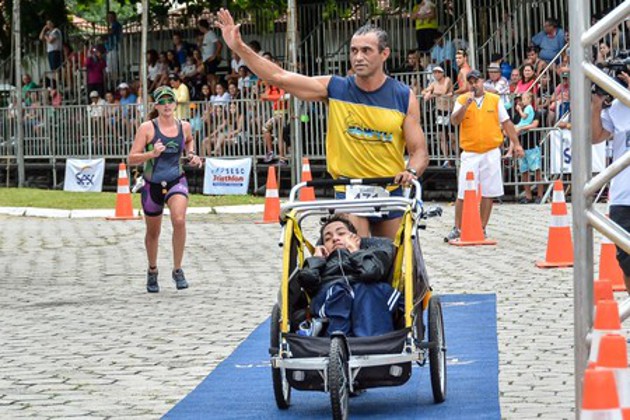 Em 2013, o pai resolveu participar com o filho de uma corrida, empurrando o filho na cadeira. "Aquilo era demais. Eu achava que trocar fralda era o bastante, mas aprendi que o esporte também é muito grande. Não estou aqui apenas para dar comida, dar banho. Quero andar, sair, viajar, ir para vários lugares com ele", conta o pai. Em 2014 o pai participou de um duatlo. Ele nadou e correu com o filho.