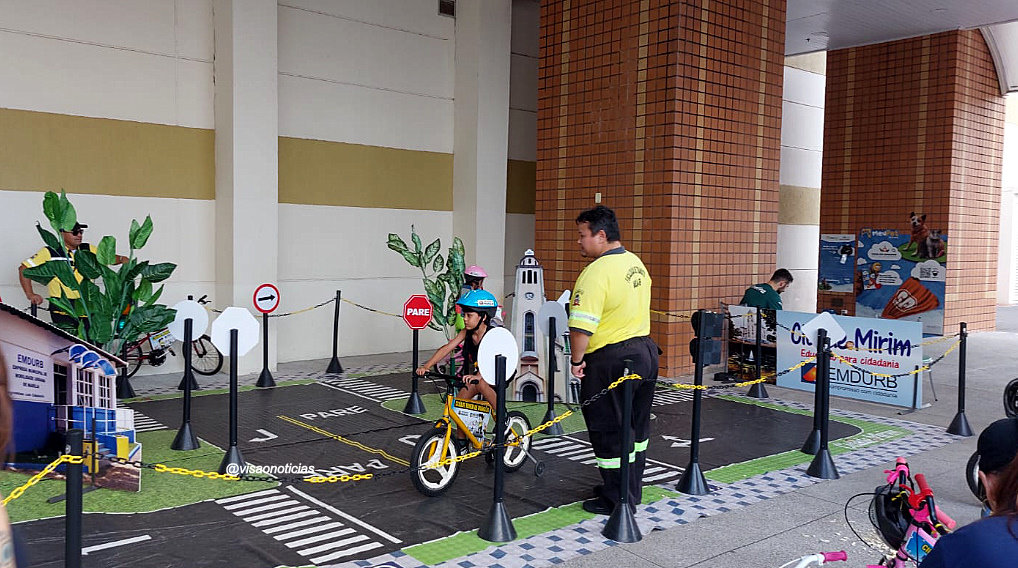 Aliás, a EMDURB também montou no shopping a Cidade Mirim de Trânsito”. As crianças são convidadas a participar e, de bicicleta, percorrerem um percurso todo sinalizado.