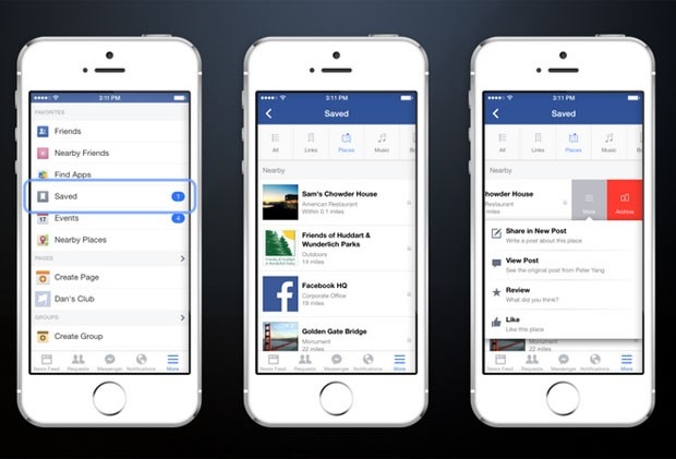 O Facebook prepara o lançamento de um recurso que permitirá aos usuários "salvar" textos, publicações de amigos, locais, filmes shows de TV em uma lista separada que pode ser acessada em outro momento, quando o usuário não estiver ocupado.