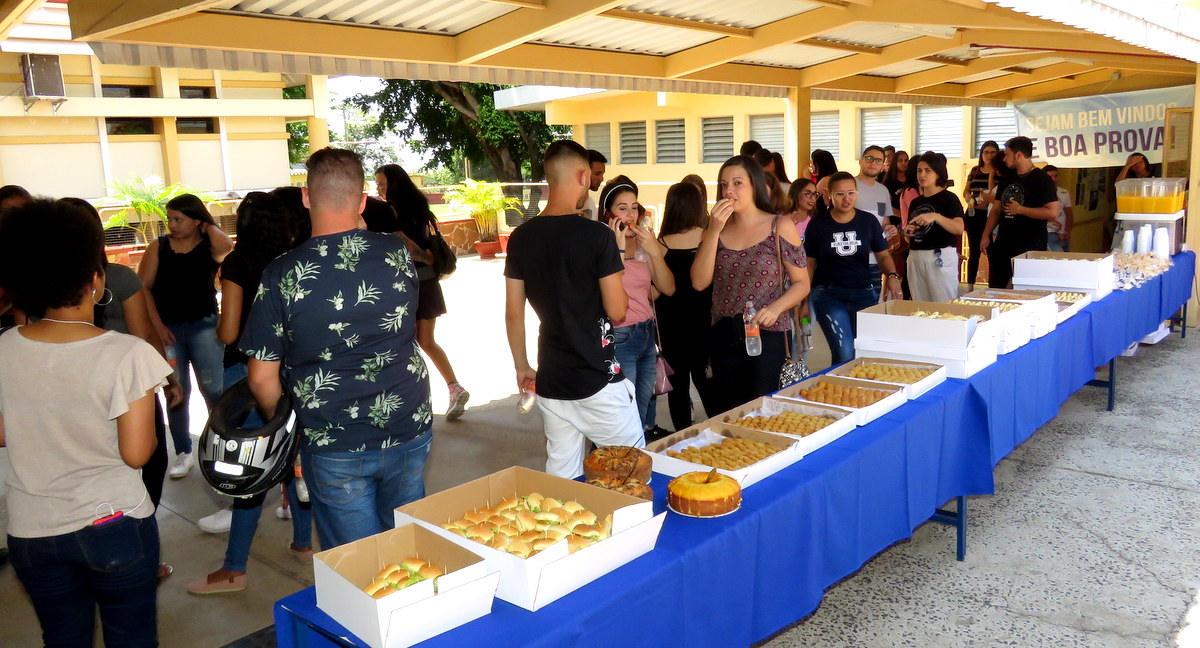 O vestibular foi realizado no sábado, com direito a lanche, suco, água, além de uma recepção acolhedora aos candidatos logo no momento que chegavam ao local da prova, prestando todas as orientações necessárias e indicando o local de confirmação da inscrição.