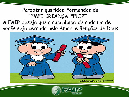 As 200 crianças da Escola Municipal de Educação Infantil (EMEI) "Criança Feliz" terão uma formatura diferente neste ano. Seguindo a nova proposta da Secretaria