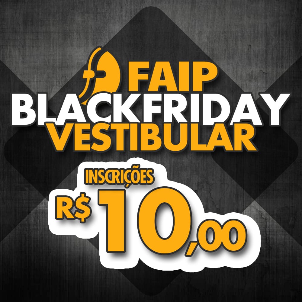 A FAIP, considerada a melhor faculdade da Alta Paulista, está com uma campanha inédita para o vestibular que será realizado neste sábado, dia 24 de novembro. É o Vestibular Black Friday Faip: os candidatos vão pagar apenas R$ 10,00 de taxa de inscrição. Para se inscrever, clique AQUI.