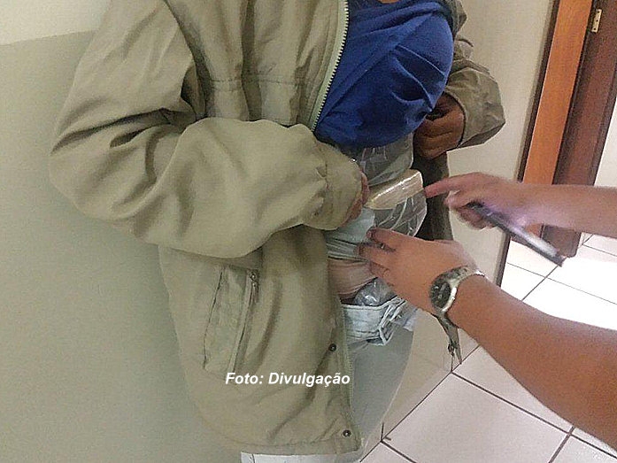 A mulher trazia essas drogas presas no próprio corpo, com fitas adesivas. A suspeita surgiu ao ser notado que a jaqueta por ela utilizada era desproporcional em relação à sua compleição física.