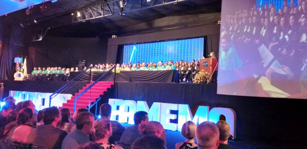 A sessão solene da Congregação da Faculdade de Medicina de Marília ocorreu nos salões do Golden Palace com a finalidade de colar grau dos 81 formandos da sua 48ª turma de médicos - Turma "Dra. Maria Virgínia Lellis da Costa Andrade".