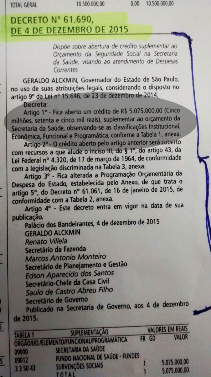 A direção do complexo já havia divulgado cópia do decreto 61.690, do dia 4 de dezembro/2015, assinado pelo governador Geraldo Alckmin, autorizando a liberação de um crédito especial no valor de R$ 5.000.075,00. Com isso, prossegue a tramitação nas Secretarias envolvidas para a liberação dos recursos.