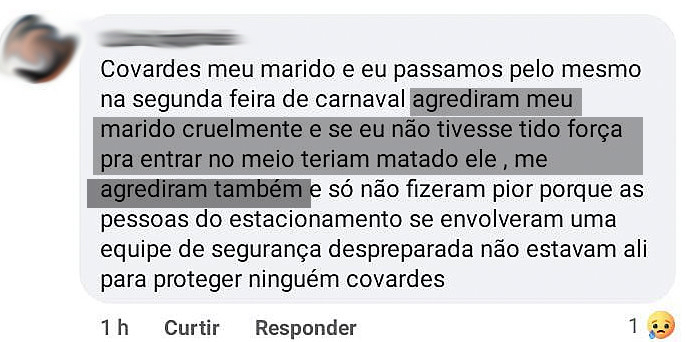 Outra internauta afirma que ela e o marido também teriam sido agredido pelos seguranças.