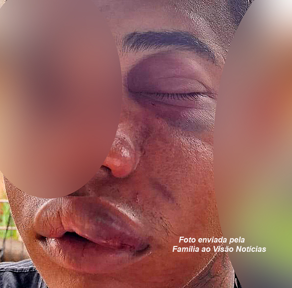 O jovem, que trabalha como capataz numa fazenda, apresenta vários ferimentos no rosto, que seriam devido a chutes e socos que recebeu dos seguranças.