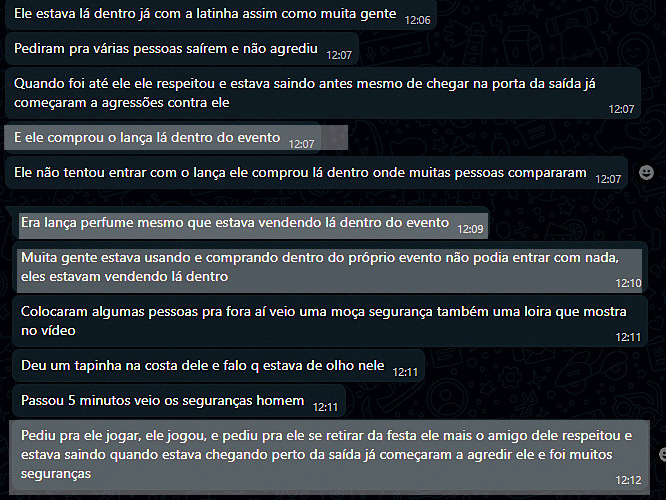 Aliás, eles afirmam que outras pessoas também teriam sido agredidas durante o evento pelos mesmos seguranças.
