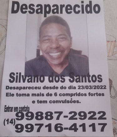 Segundo Silvana da Silva, filha do desaparecido, ele faz uso de medicamentos controlados para convulsão/epilepsia e não possui telefone celular.