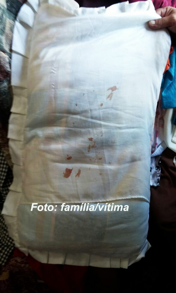 "O Algoz (suspeito) adentrou o quintal, ficou escondido escutando os movimentos de sua vitima, quando percebeu que ela dormiu, arrombou a casa, foi até o seu quarto, viu a vítima dormindo de bruços, subiu em cima das costas dela, prendendo o corpo e os braços dela com suas coxas e com as duas mãos na nuca dela, deu inicio ao processo de asfixia sobre o travesseiro, como a reação natural é debater-se, ela deve ter ferido a boca e gengiva com a dentadura (por isso as marcas de sangue vivo no travesseiro) e percebendo que o travesseiro estava atrapalhando seu intento maléfico, num movimento brusco, puxou o travesseiro arrancando a parte de baixo da dentadura, ficando estas duas peças a mais ou menos 60 centímetros de distancia do corpo.