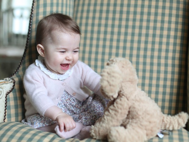 As últimas fotos da princesa Charlotte foram divulgadas em novembro. Elas mostravam a princesa com um cachorro de pelúcia. A menina nasceu no dia 2 de maio, é irmã do príncipe George e a quarta na linha de sucessão do trono britânico.