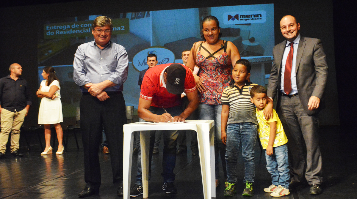 A Menin Engenharia, em parceria com a Caixa, EMDURB e Prefeitura, realizou nesta semana, no Teatro Municipal de Marília, mais uma solenidade de entrega de contratos registrados em cartório.
