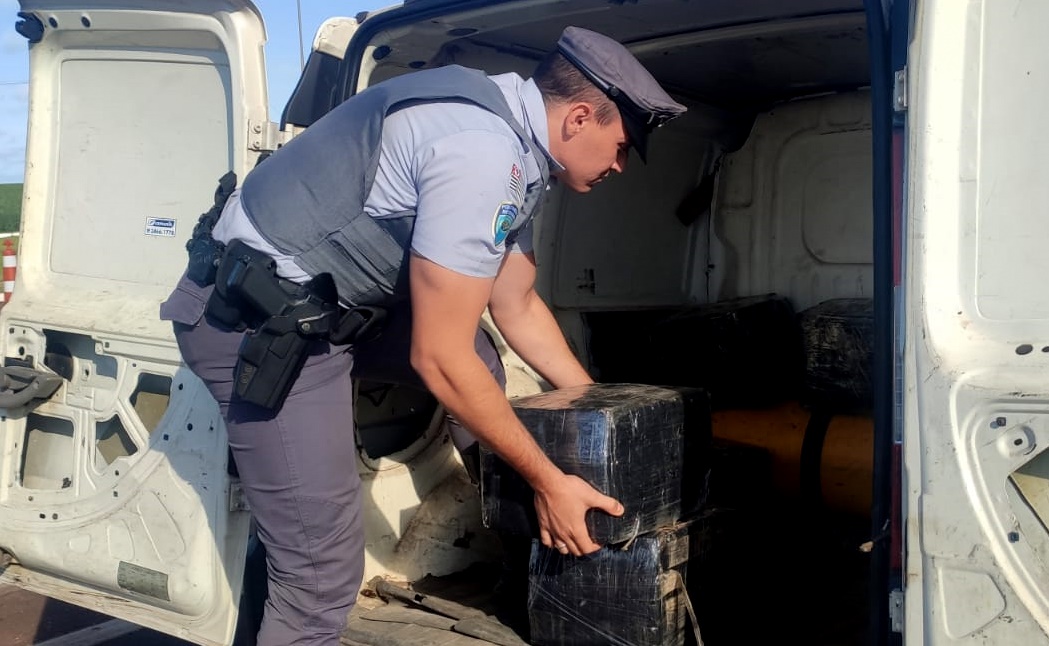 A Polícia Rodoviária Estadual apreendeu neste sábado um carregamento de maconha. São cerca de 20 fardos que estavam sendo transportados em um furgão utilitário. O motorista, de 44 anos, e um acompanhante foram presos em flagrante.